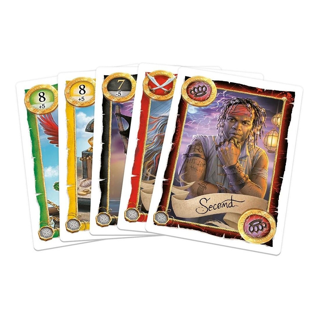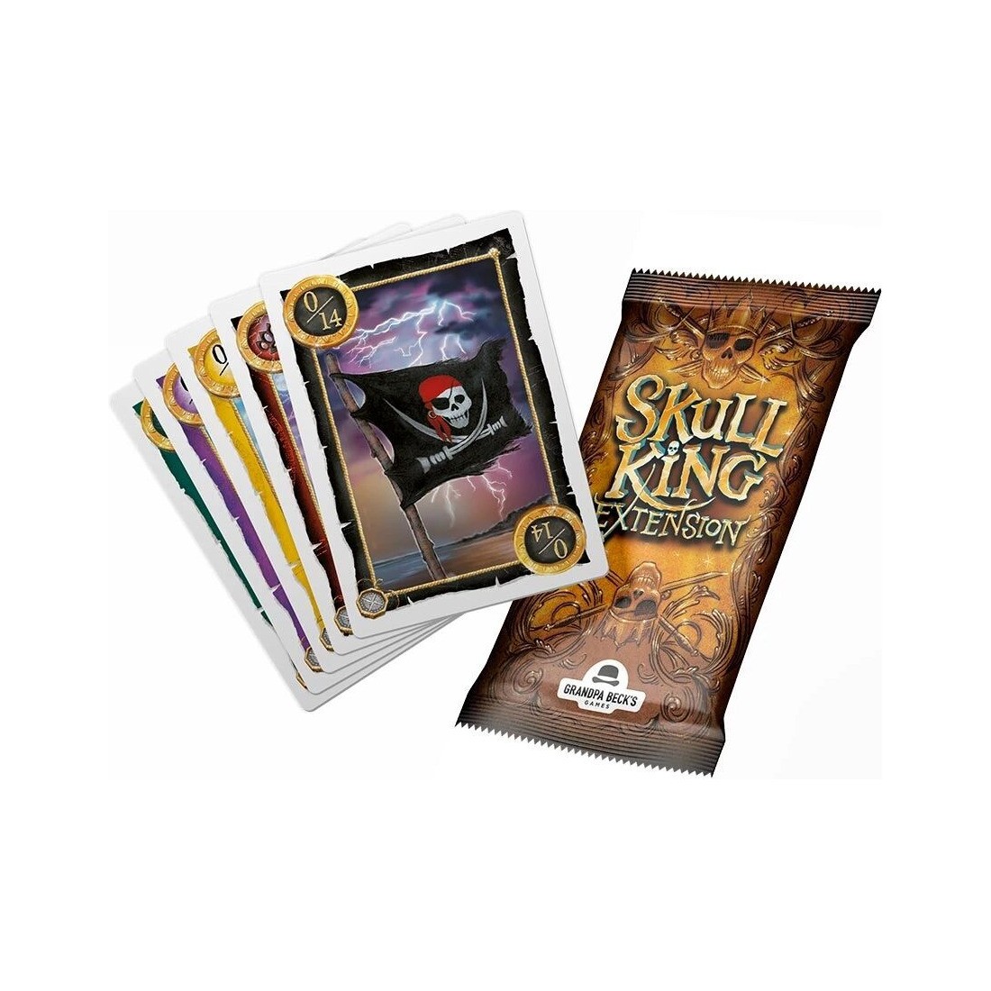 Skull King – Extension fait souffler un vent de chaos sur vos parties ! Fidèle à l’esprit du jeu de base, cette extension s’intègre simplement et immédiatement grâce à 12 nouvelles cartes de couleur respectant les règles originales, accompagnées de 7 cartes spéciales inédites aux effets dévastateurs. Faites connaissance avec Mary Throne, la nouvelle pirate redoutable, capable d’imposer une carte à un adversaire, et exploitez des pouvoirs explosifs comme le Supplice de la Planche, la Dernière Salve ou encore la Raie tachetée pour retourner une manche au moment parfait. Bluff, prises de risque et retournements spectaculaires sont plus que jamais au rendez-vous !