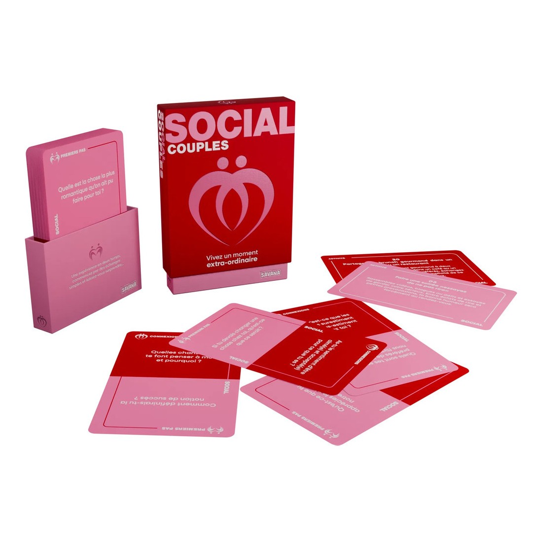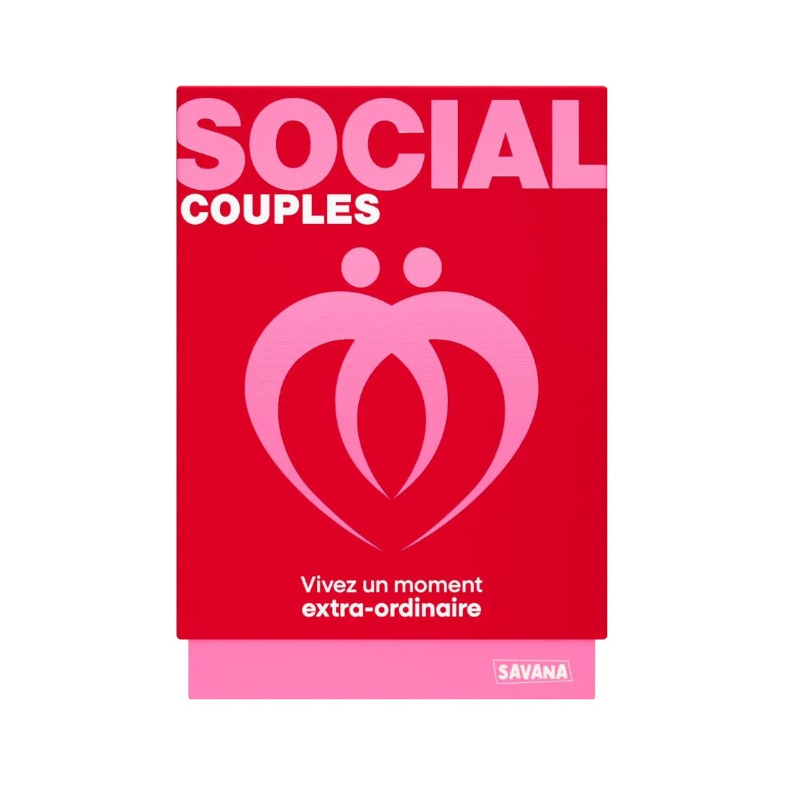 Social Couples est un jeu de société d'ambiance pour 2 joueurs, dès 16 ans pour des parties d'environ 30 minutes, édité par Savana.