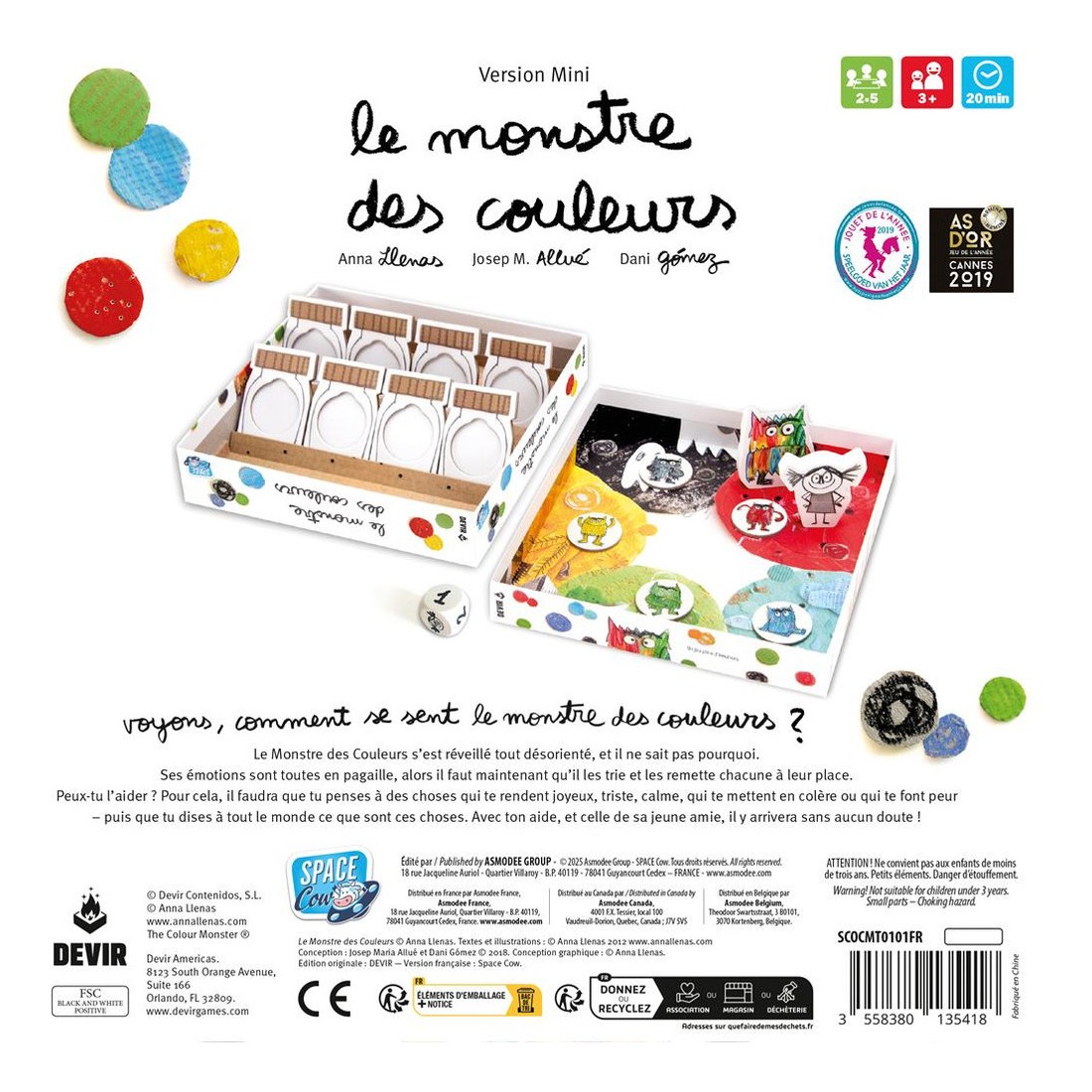 Ensuite, on les remettra ensemble dans leurs jarres."Le Monstre des couleurs est un jeu pour les enfants à partir de 3 ans, inspiré du best-seller de la littérature pour enfants d'Anna Llenas autour des émotions. Dans cette nouvelle "mini édition", sa boîte et tous ses éléments ont été repensées pour offrir un format beaucoup plus compact.