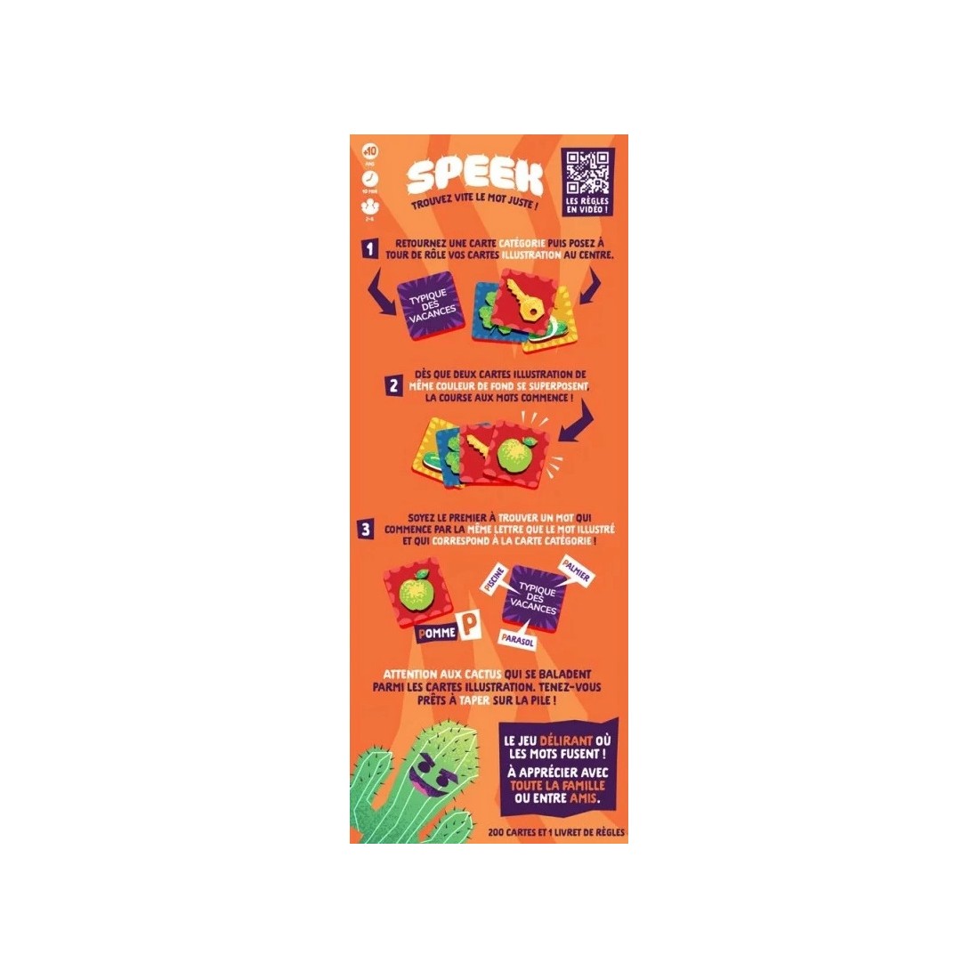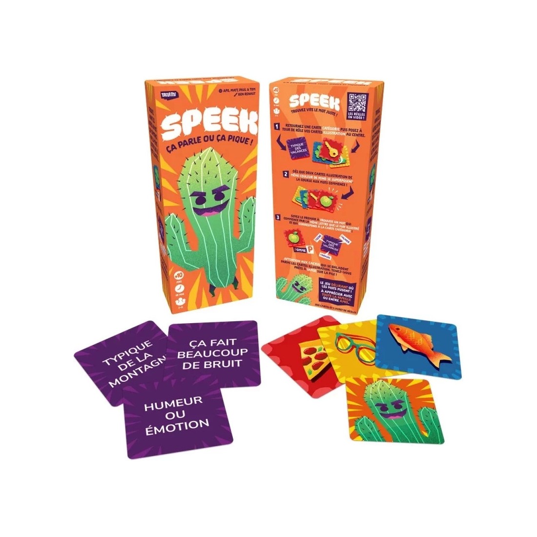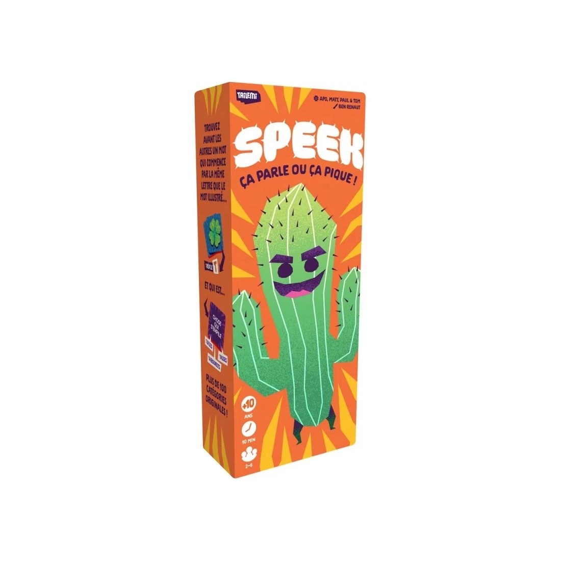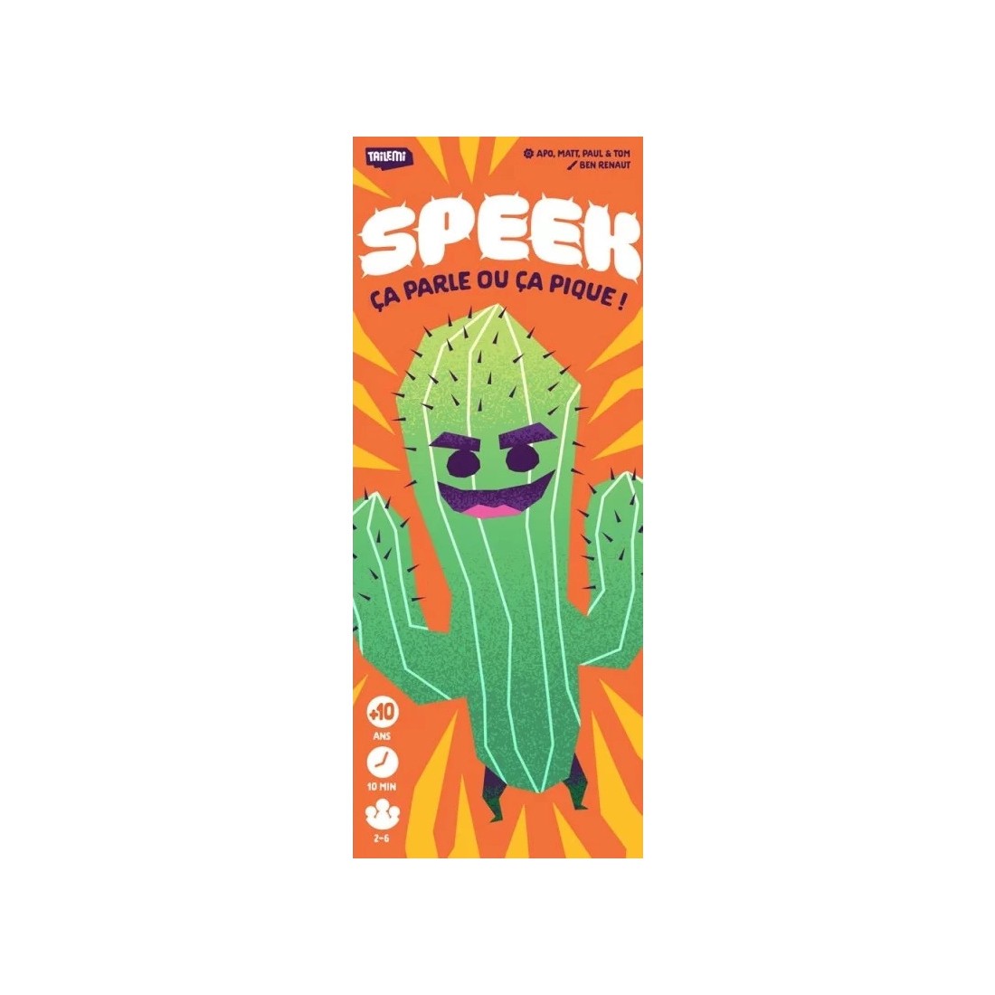 Speek est un jeu d'ambiance simple à expliquer et rapide à jouer dans lequel les joueurs doivent trouver le mot juste plus vite que les autres.