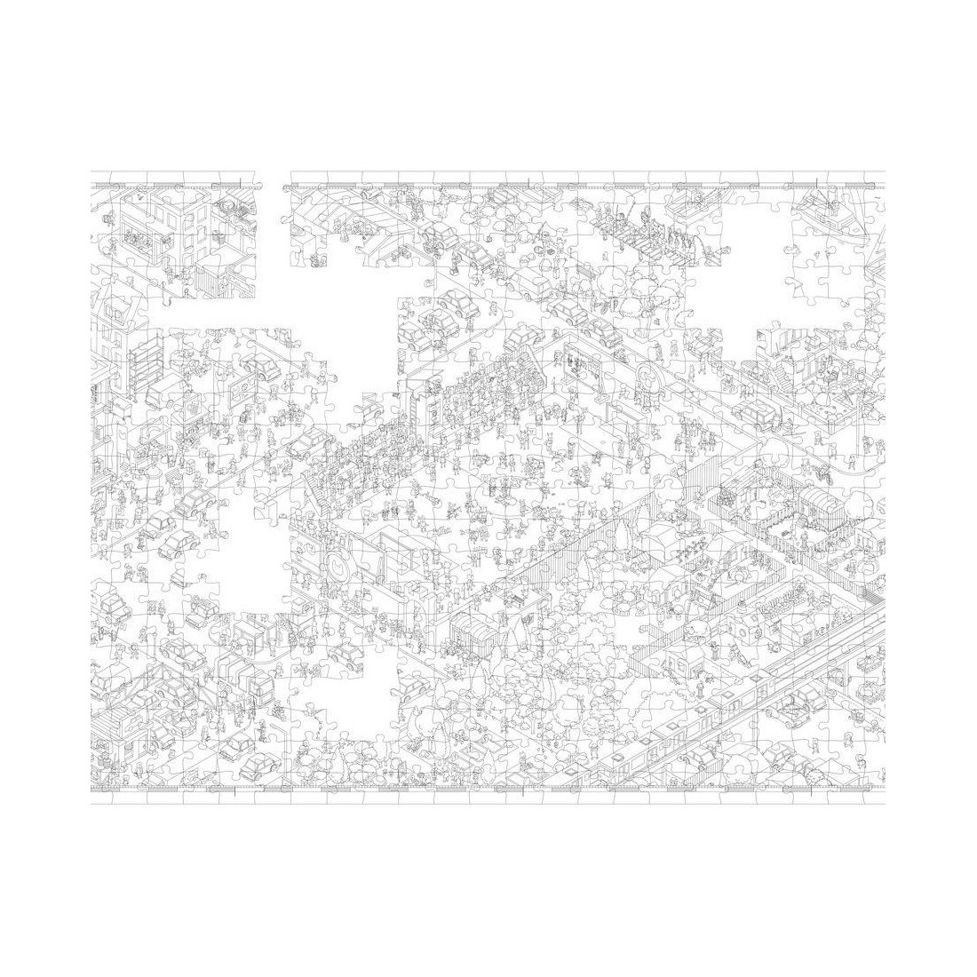 Dans ce puzzle de 500 pièces, vous découvrirez le plan détaillée du quartier de MicroMacro Full House, offrant une vue d'ensemble des rues et du stade de football.