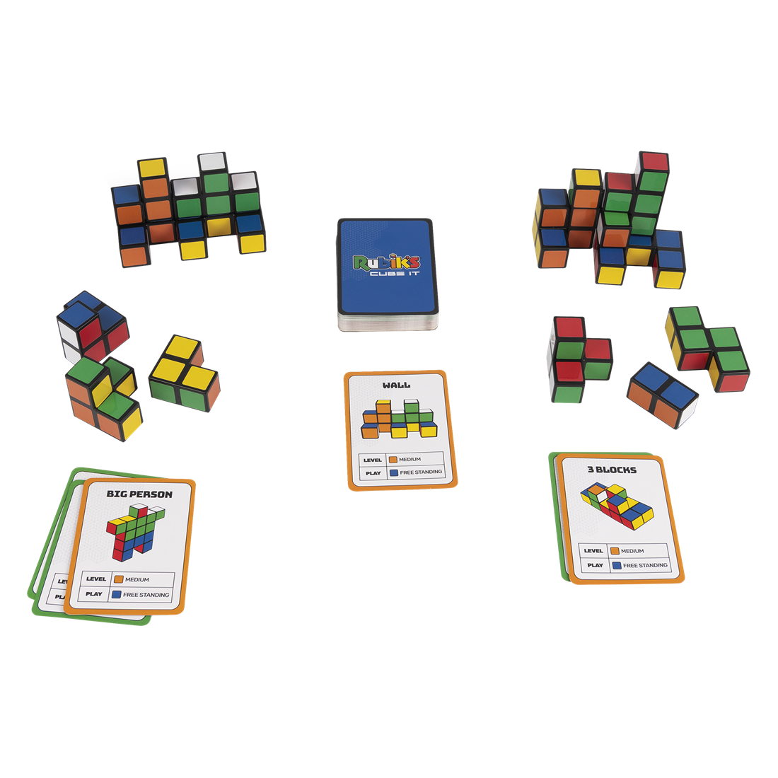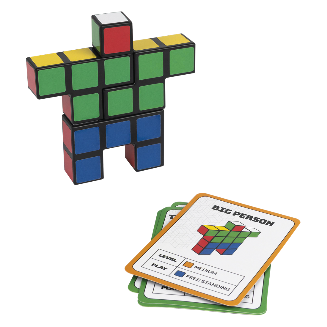 Reconstruire, reproduire, réinventer ! Découvrez ce jeu de rapidité dans l'univers Rubik's Cube avec pour but de reproduire le plus vite possible les configurations indiquées sur les cartes. Les cartes challenge ont trois niveaux de difficulté. Vous pouvez ainsi reconstituer le célèbre Cube de Rubik ou imaginer vos propres figures.