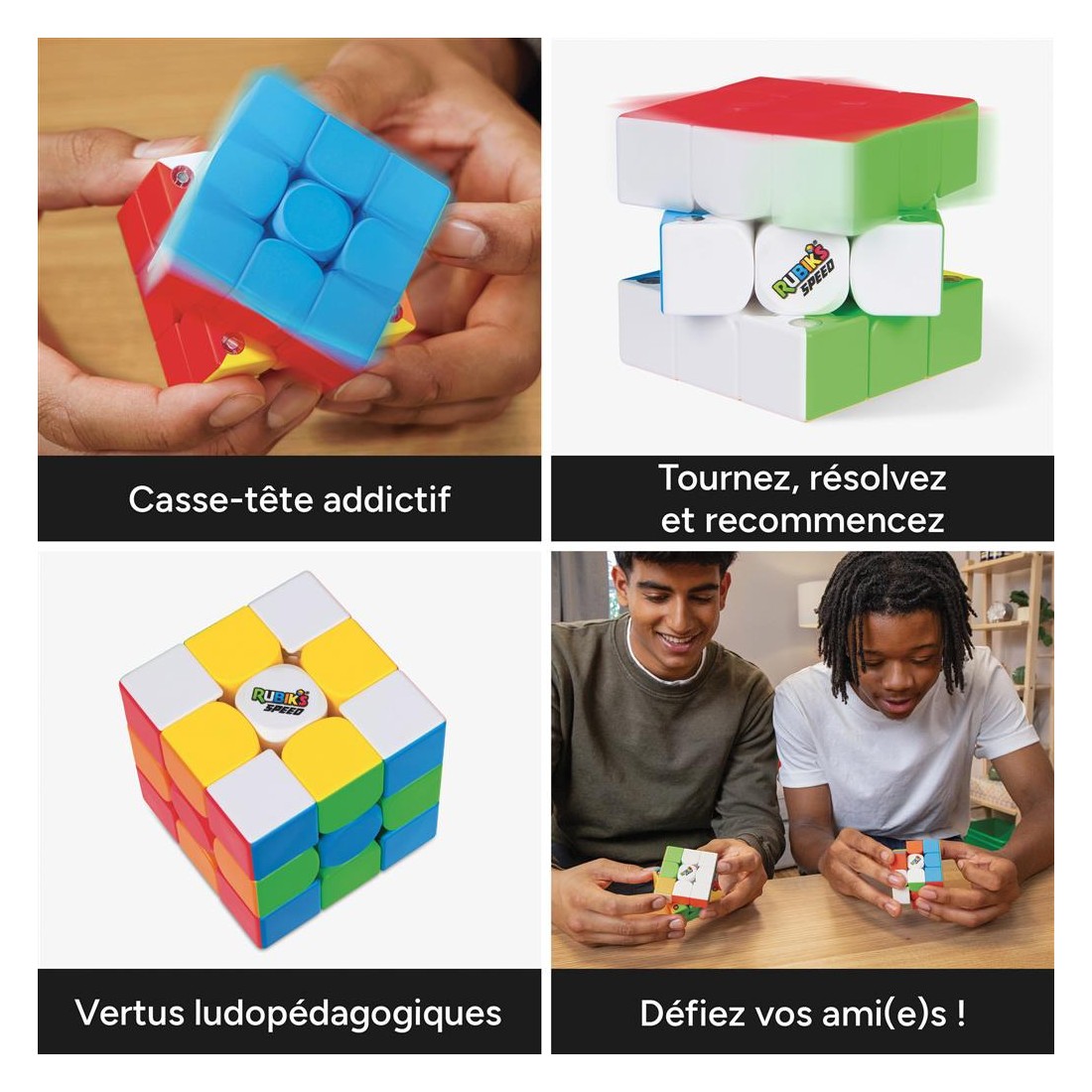Un jeu plus fluide : le Rubik’s Speed est un cube de vitesse magnétique qui dispose d'un noyau plus solide et est équipé d'un mécanisme concu pour le rendre encore plus rapide, plus lisse et plus fiable que jamais. Vous pouvez maintenant effectuer des déplacements plus rapides, plus fluides et sans accrocs qui vous feraient perdre du temps.
