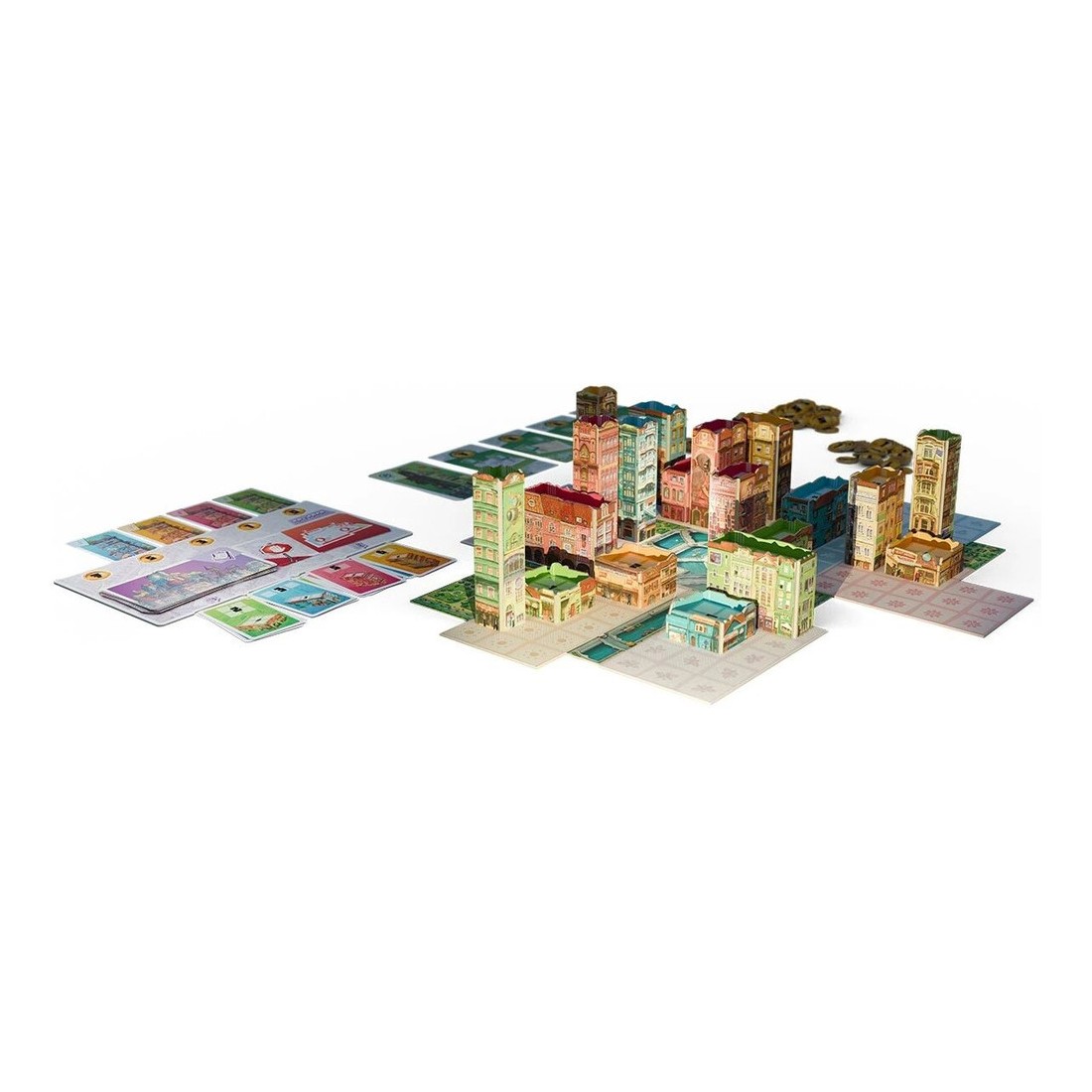 Grâce à son matériel en 3D particulièrement immersif, Bella Vista transforme votre plateau en véritable petite ville où chaque décision influence le paysage urbain.