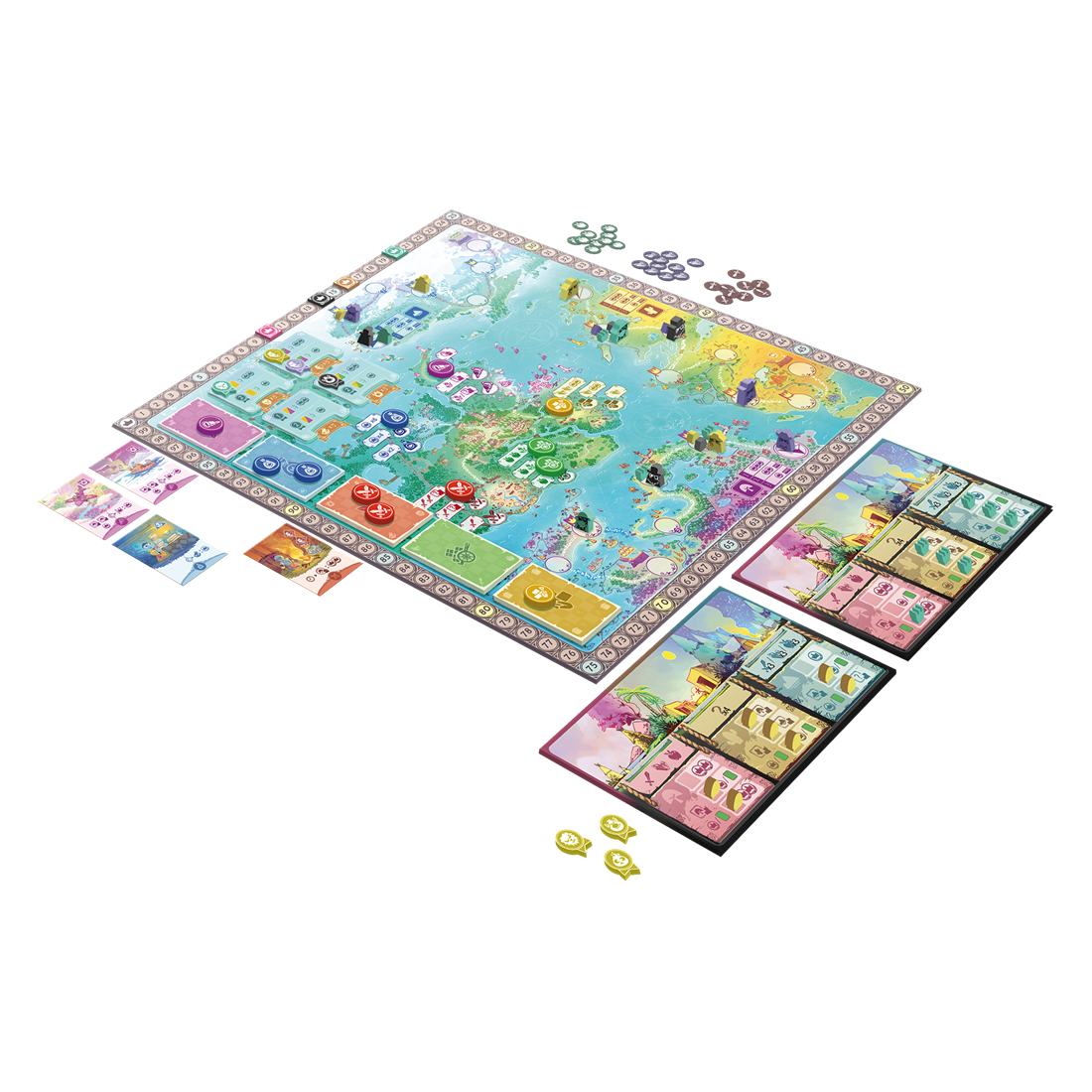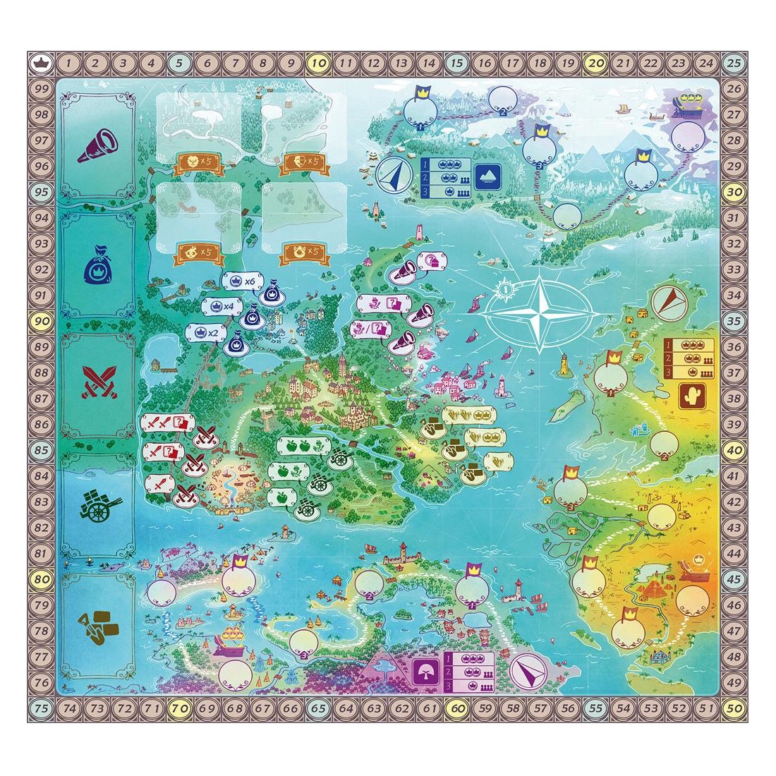 Après avoir sélectionné des cartes Aventure, vous utiliserez les mêmes jetons que ceux que vous avez sélectionnés dans le sac pour visiter des lieux sur le continent de Navoria lors d'une phase de placement d'ouvriers. La puissance des lieux de placement d'ouvriers diminue après le placement de chaque jeton, vous devrez donc visiter chaque lieu en premier pour obtenir les meilleurs avantages !