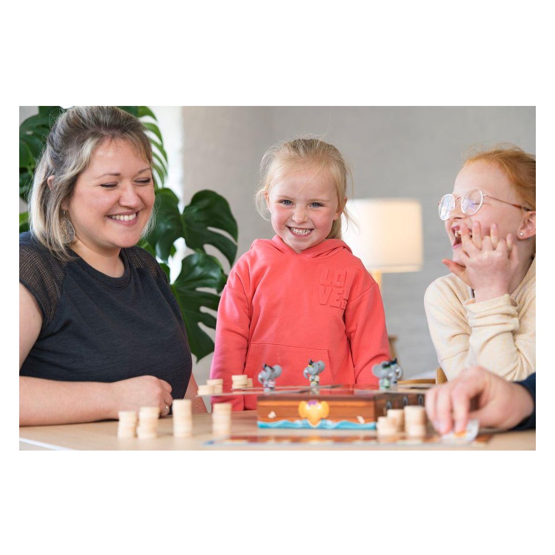 Dans La planche des pirates vous allez fouiller le coffre du capitaine et placez des poids au bout de la planche de vos adversaires. Votre idée ? Le déséquilibrer pour qu’il tombe à l’eau. Mais attention à ne pas être trop gourmand car à chaque faux pas c’est vous qui allez avancer d’un pas sur votre propre planche.