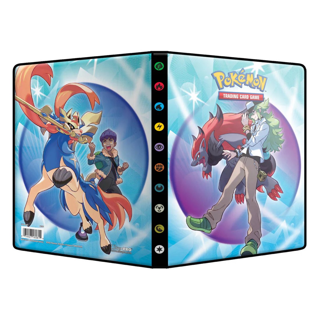 Les portfolios 4 pochettes pour Pokémon arborent une couverture éclatante en pleine illustration mettant en scène les Pokémon partenaires N & Zoroark ainsi que Hop & Zacian. Chaque portfolio permet de ranger et protéger jusqu'à 40 cartes au format standard en simple insertion et 80 cartes en double insertion dans des pages en polypropylène sans danger pour les archives.