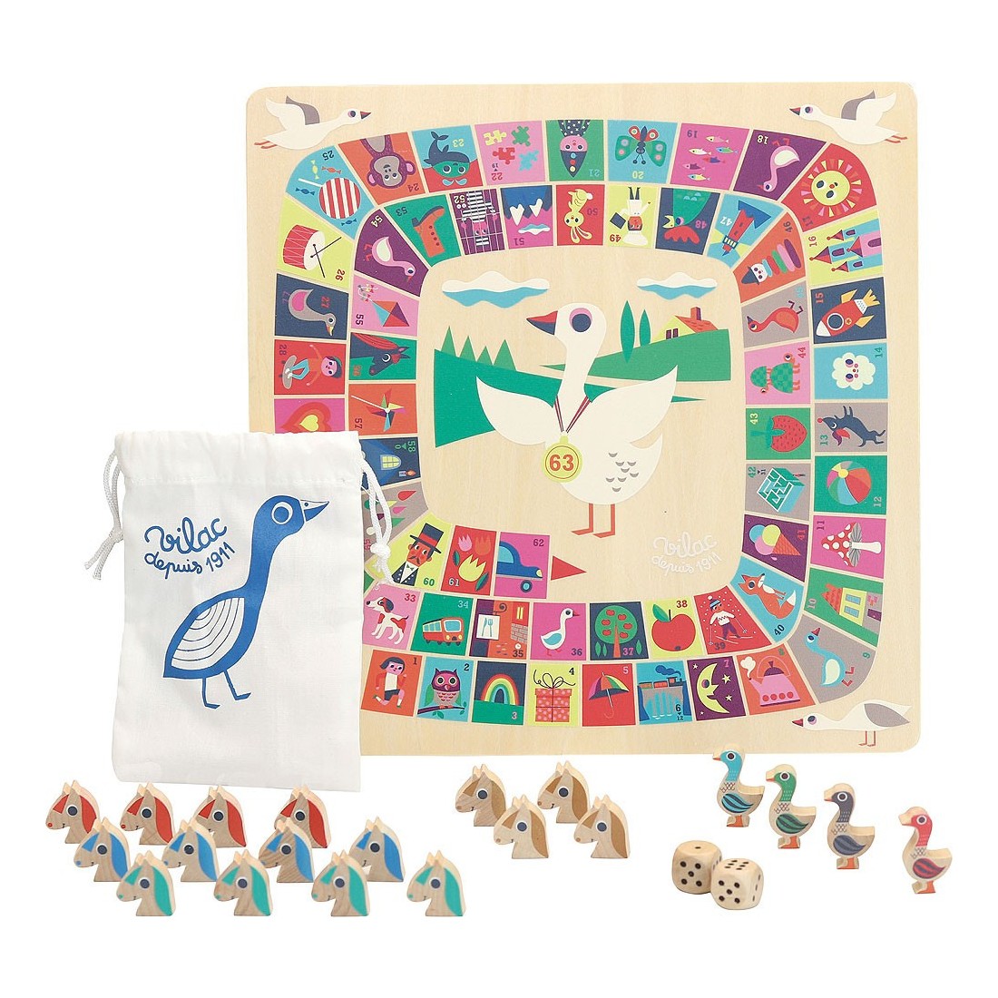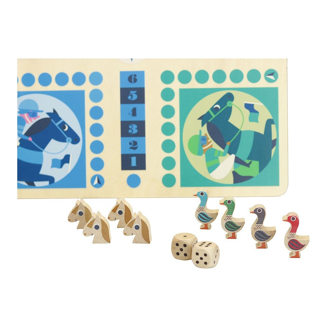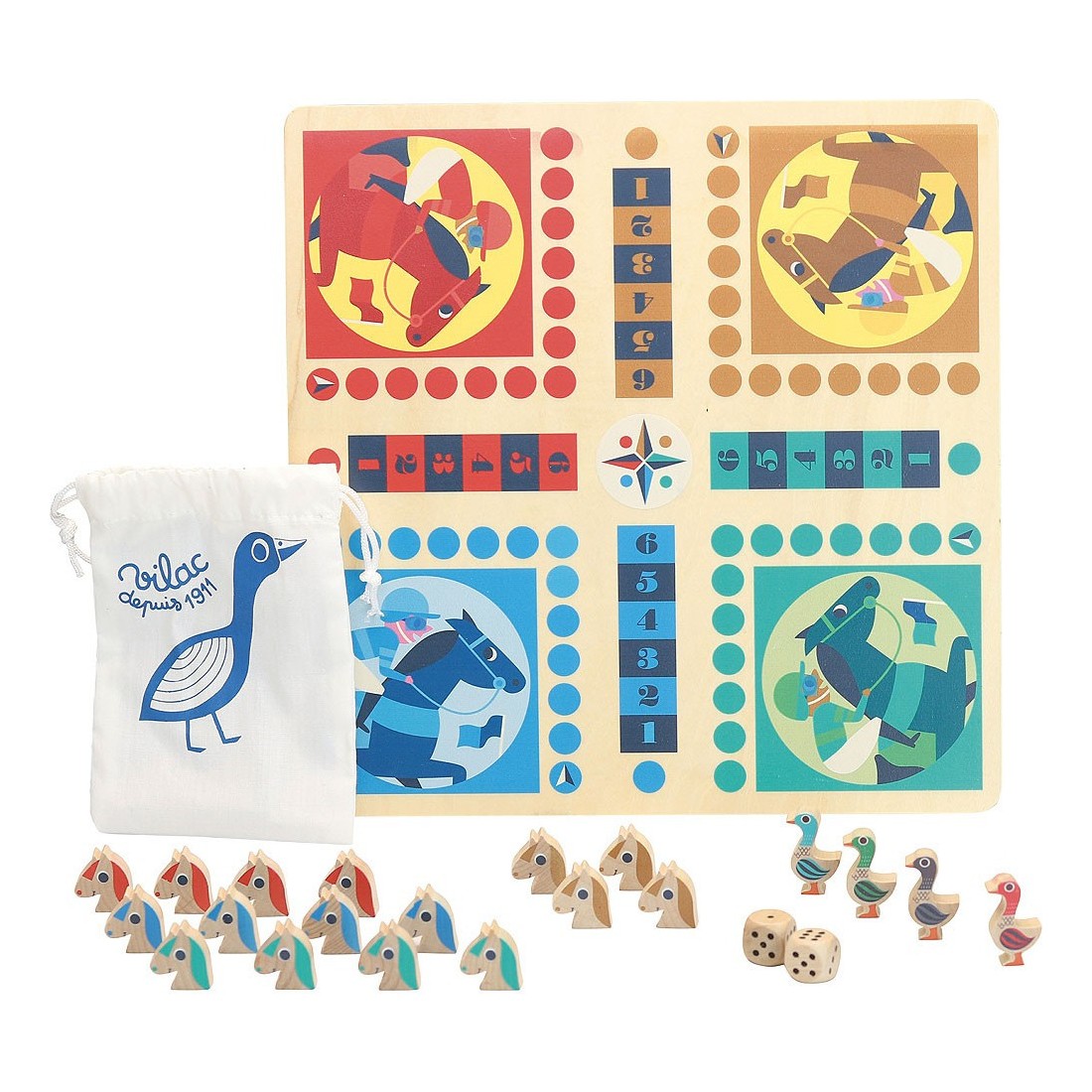 Boite de jeux de l'oie et de petits chevaux illustrés par Ingela P. Arrhenius - dans son univers vintage et retro. À partir de 4 ans