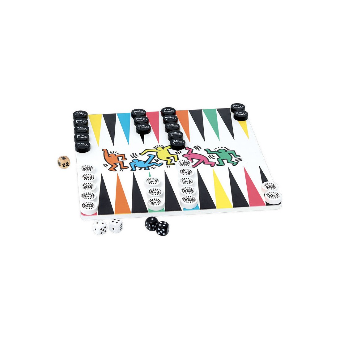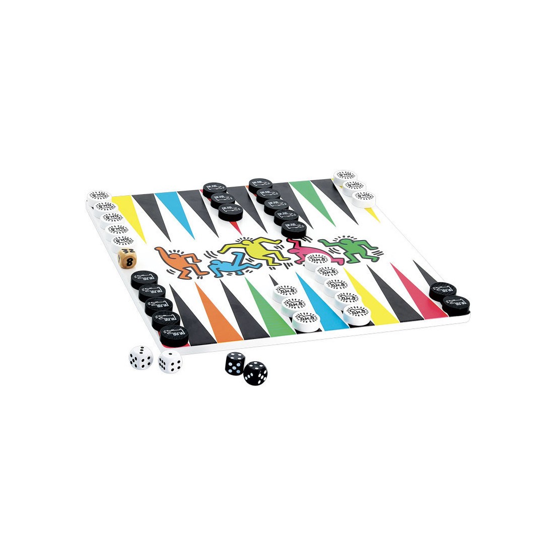 Jeu de dames à partir de 6 ans, jeu de backgammon à partir de 12 ans. • Un plateau réversible. • 40 pions. • 4 dés. • Un dé multiplicateur ""videau"". • Une règle du jeu.
