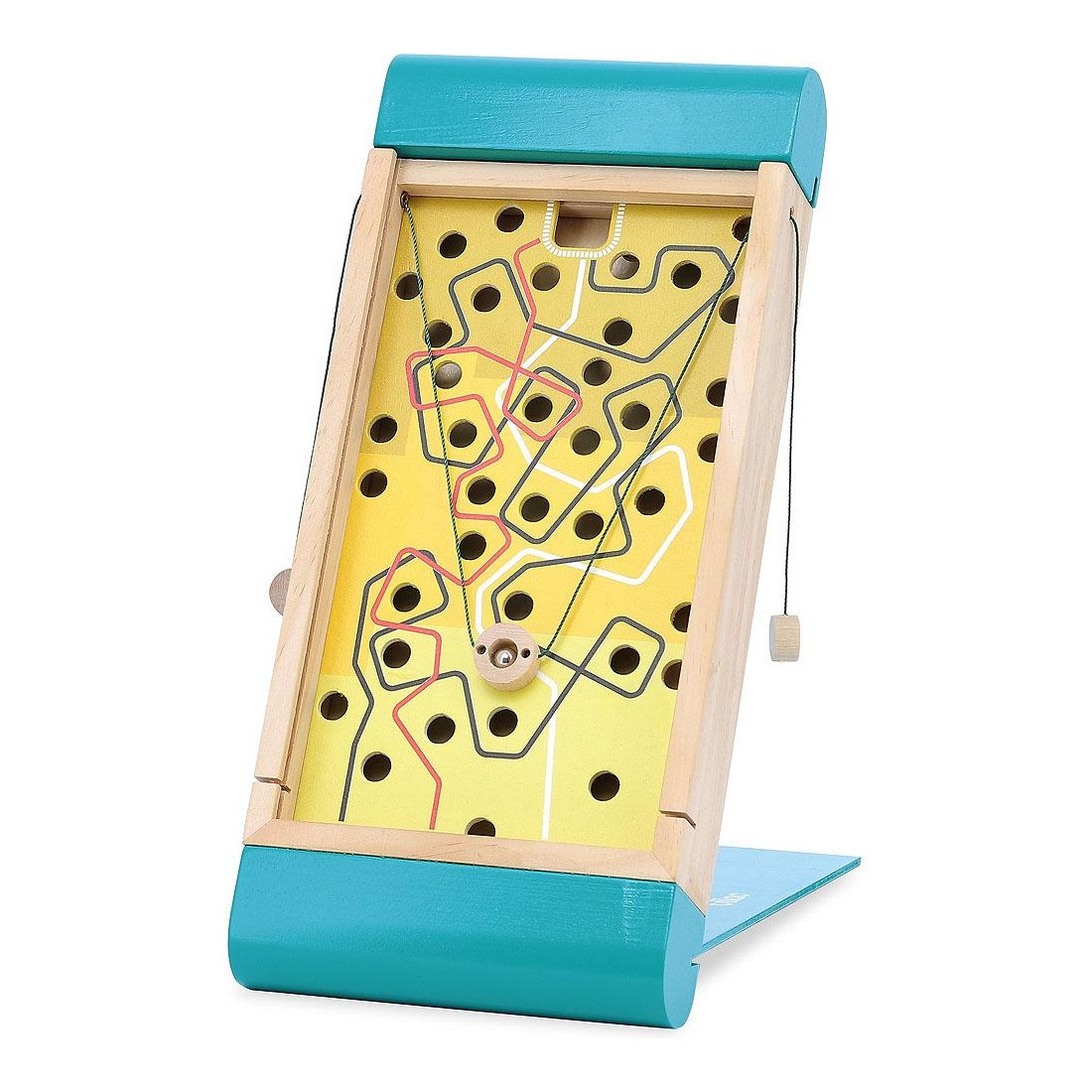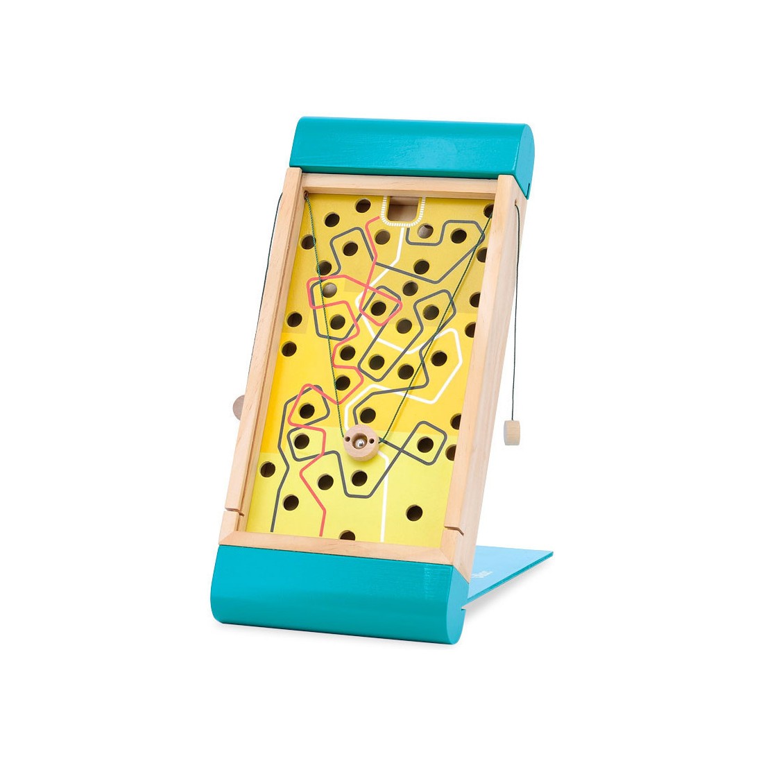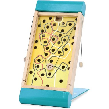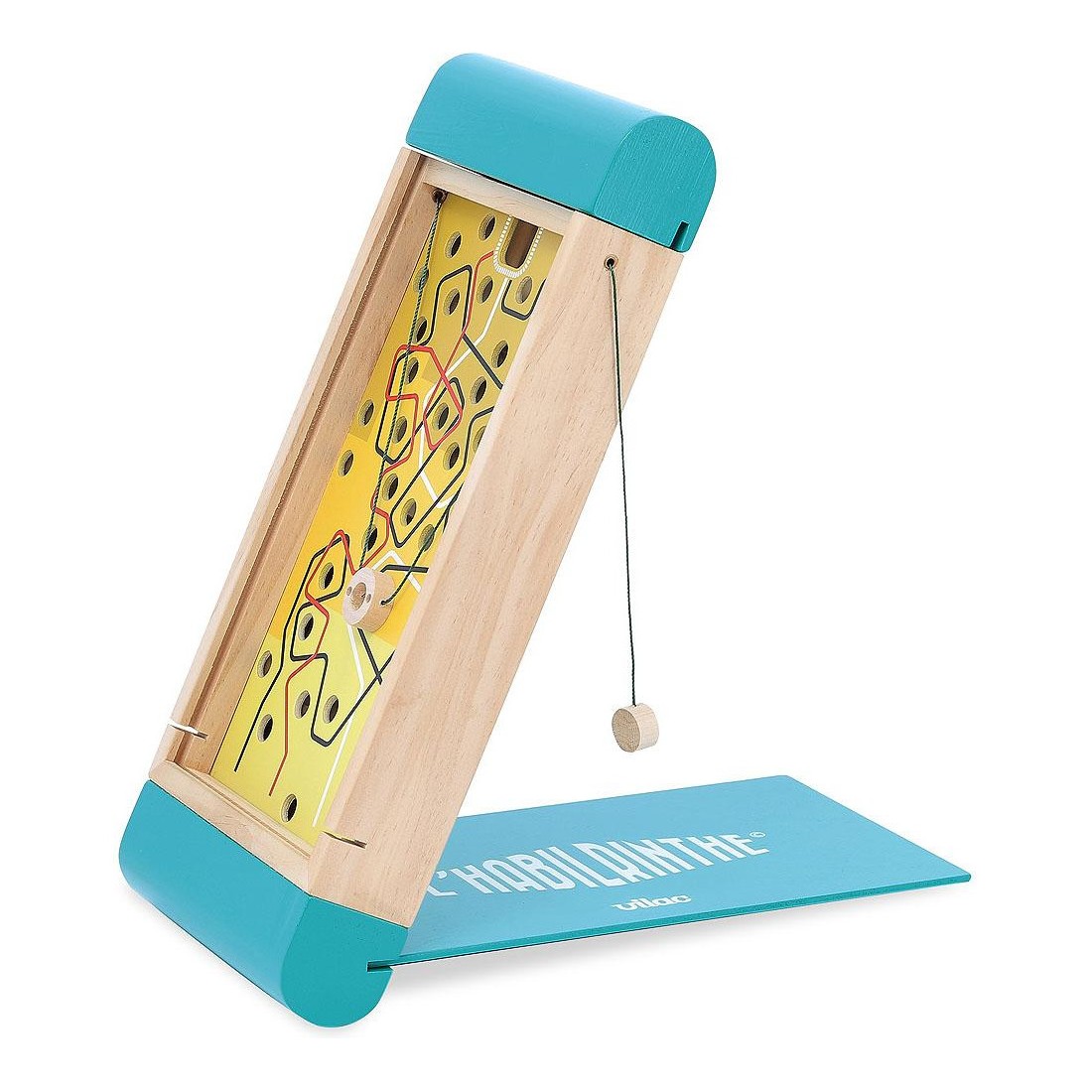 L'Habilrinthe, contraction de ""habile"" et ""labyrinthe"" est un 2 en 1 : D'un côté, en actionnant les 2 poignées, il faut réussir 3 parcours de difficulté croissante en dirigeant la bille entre les trous sans la faire tomber. De l'autre, un autre jeu de labyrinthe qu'il faut parcourir en dirigeant la bille uniquement en penchant le L'Habilrinthe dans toutes les directions.