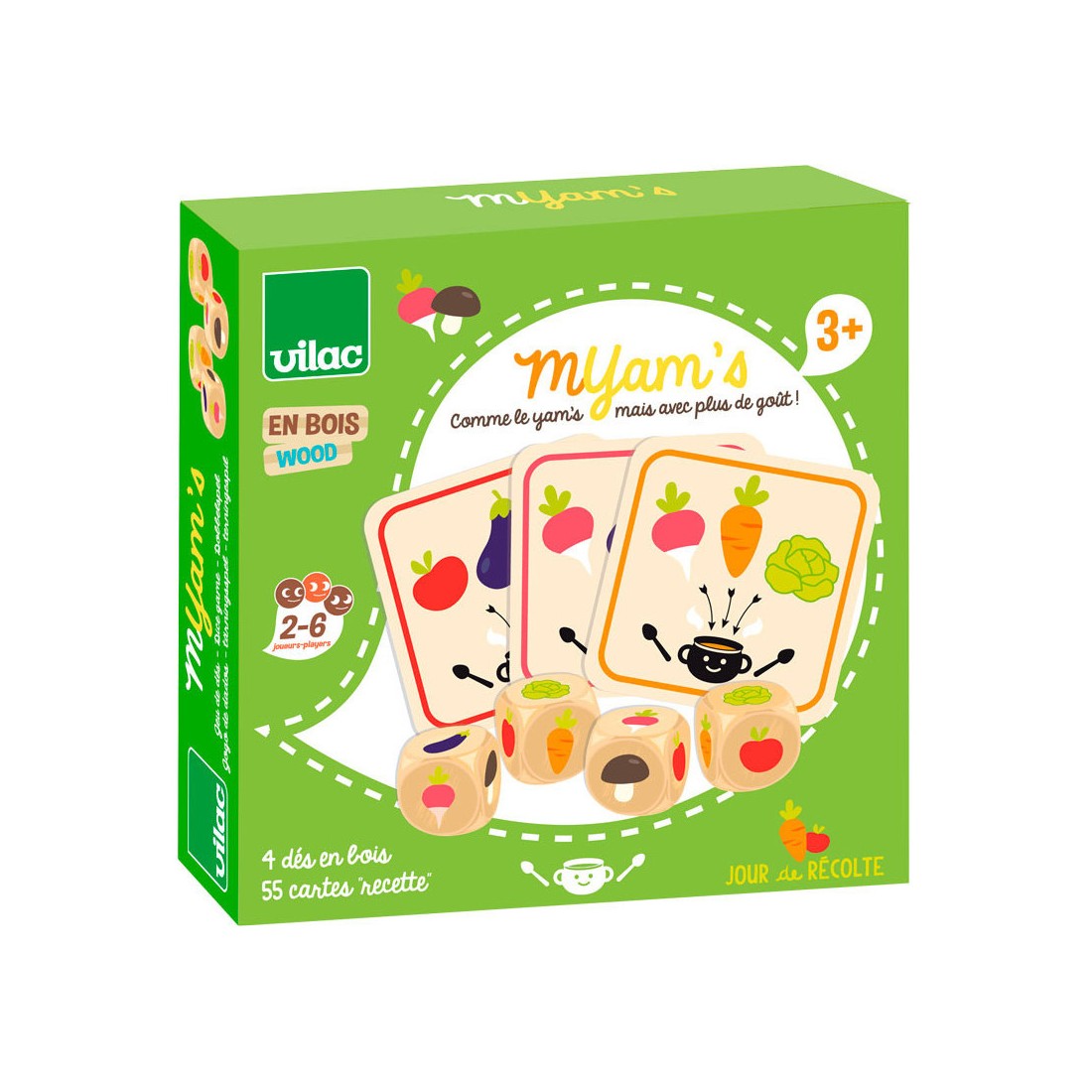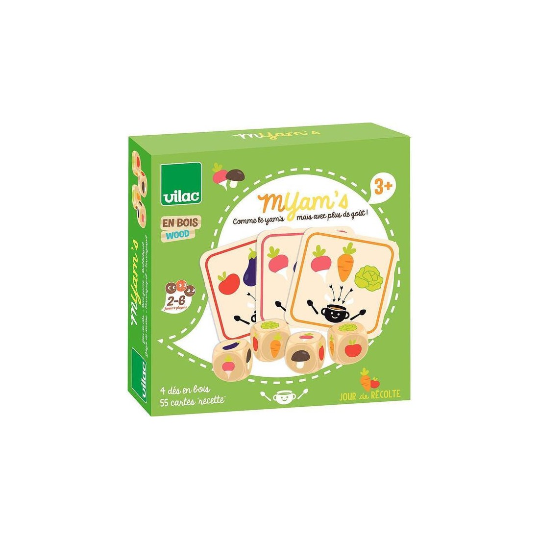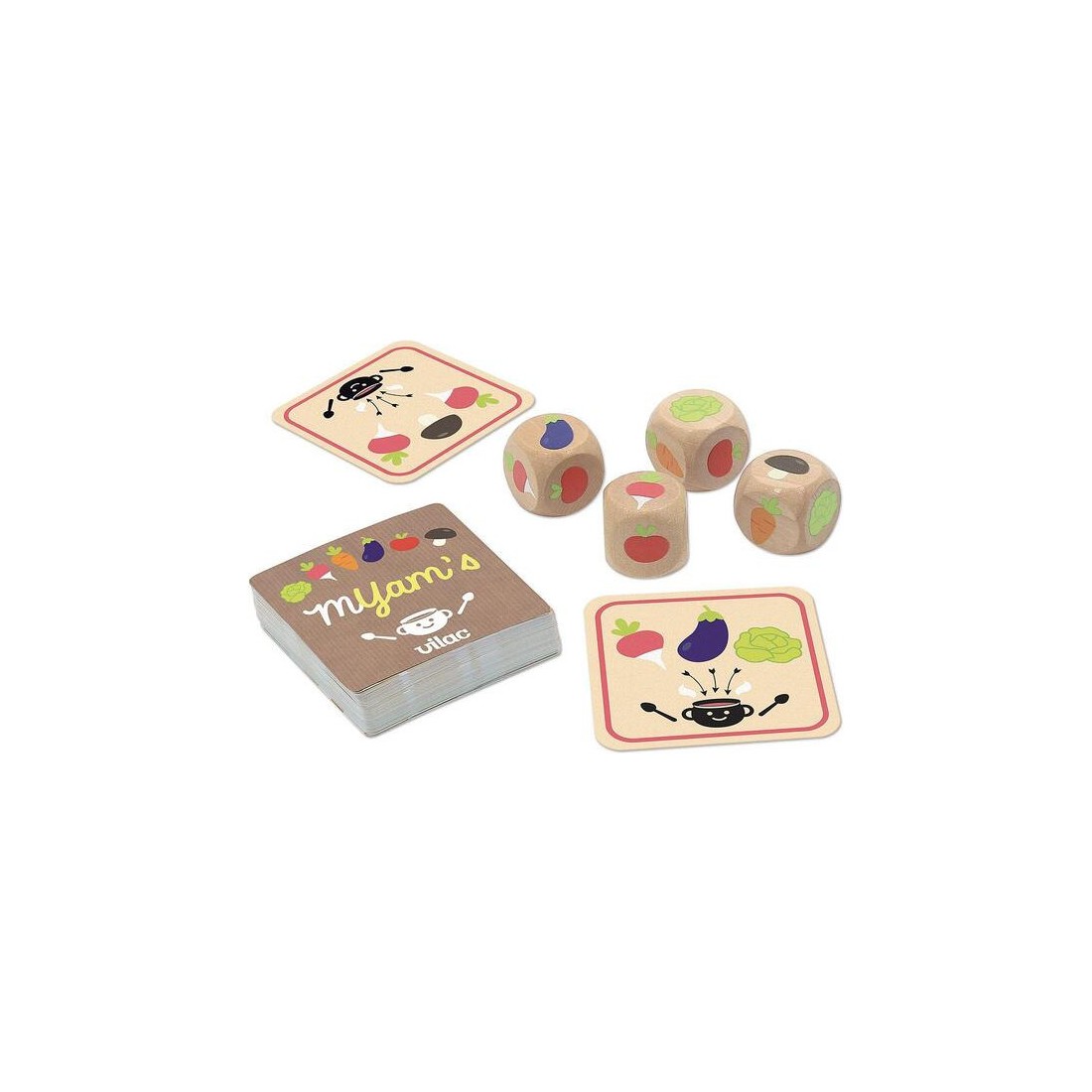 Il faut piocher une carte recette et faire la combinaison avec les dés pour la remporter, hum les bons petits plats ! Le gagnant est celui qui a le plus de bons petits plats à la fin de la partie. • 4 dés en bois. • 55 cartes recette.