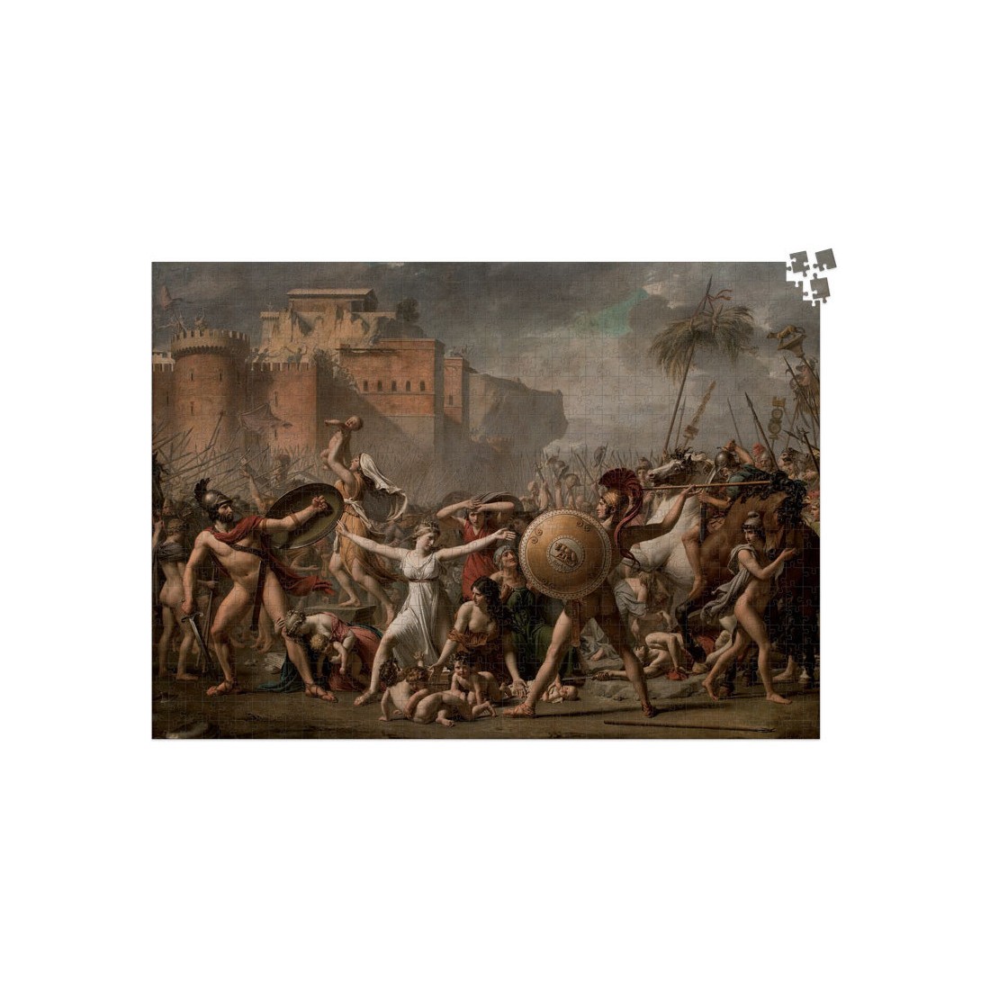 Serez-vous assez patient pour venir à bout de ce puzzle 1000 pièces en carton du tableau de David intitulé ""Les Sabines"" ? Voulue comme une suite du tableau ""L’Enlèvement des Sabines"" de Nicolas Poussin, cette grande toile de plus de 5 mètres de large et de près de 4 mètres de haut a été peinte en quatre ans pour s'achever en 1799.