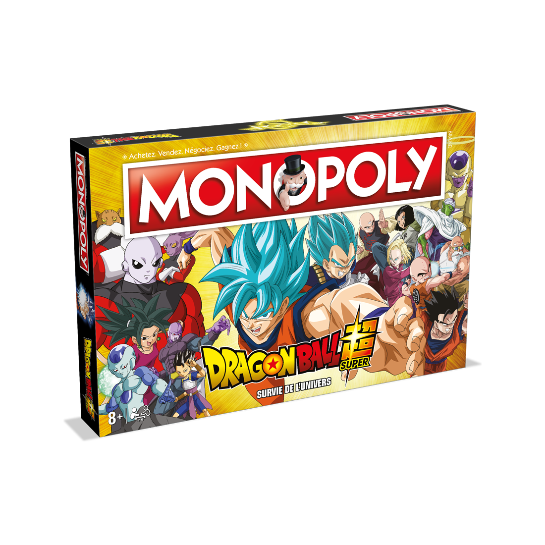 Le tournoi du pouvoir commence, le sort des univers est en jeu ! Dans cette édition du Dragon Ball Super du Monopoly, vous aurez la chance de posséder les personnages iconiques de l'Anime tels que Son Gôku, Piccolo, Son Gohan, Vegeta, Jiren, le Grand Prêtre, Zen'ô, les Dieux de la destruction et bien d'autres.