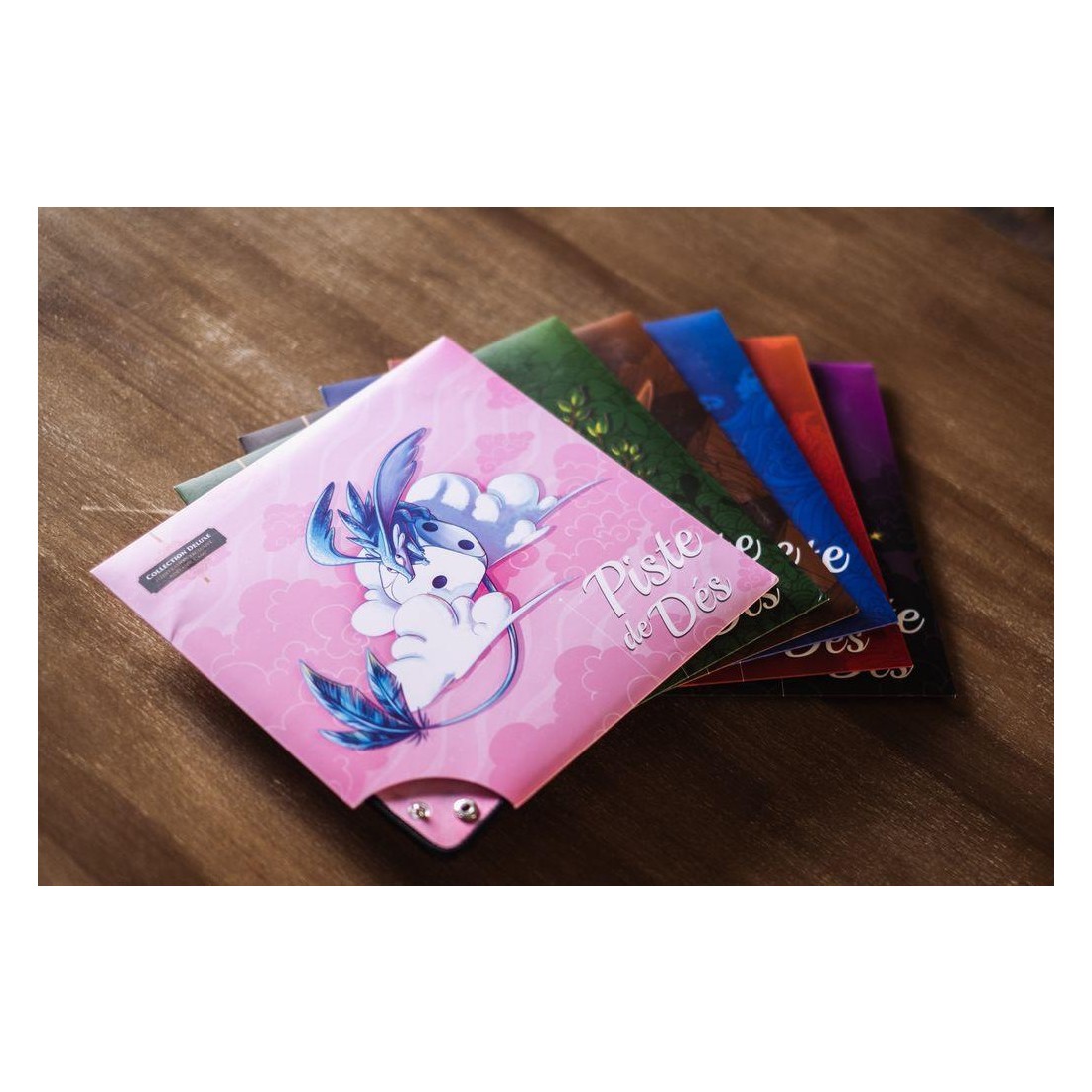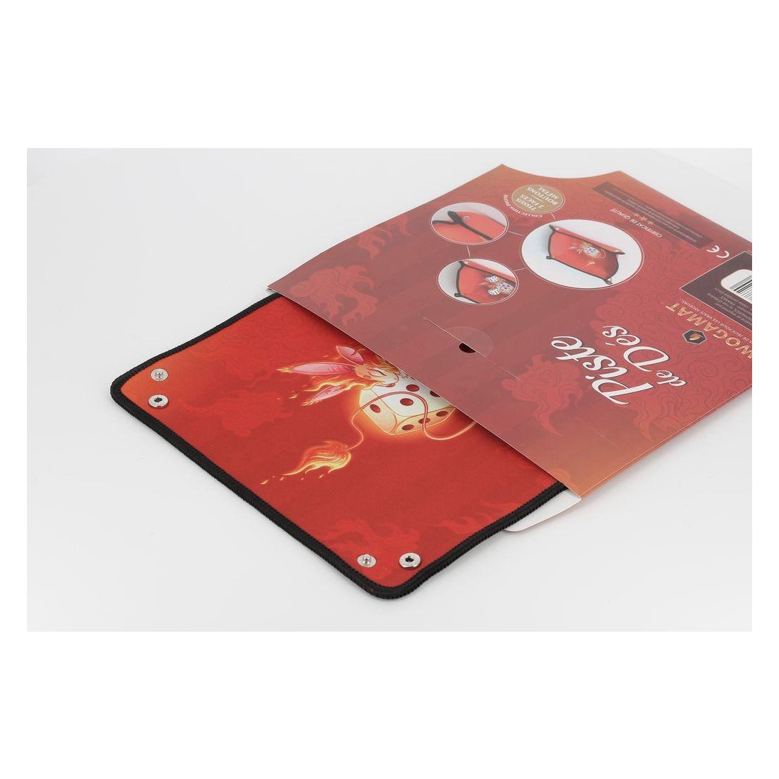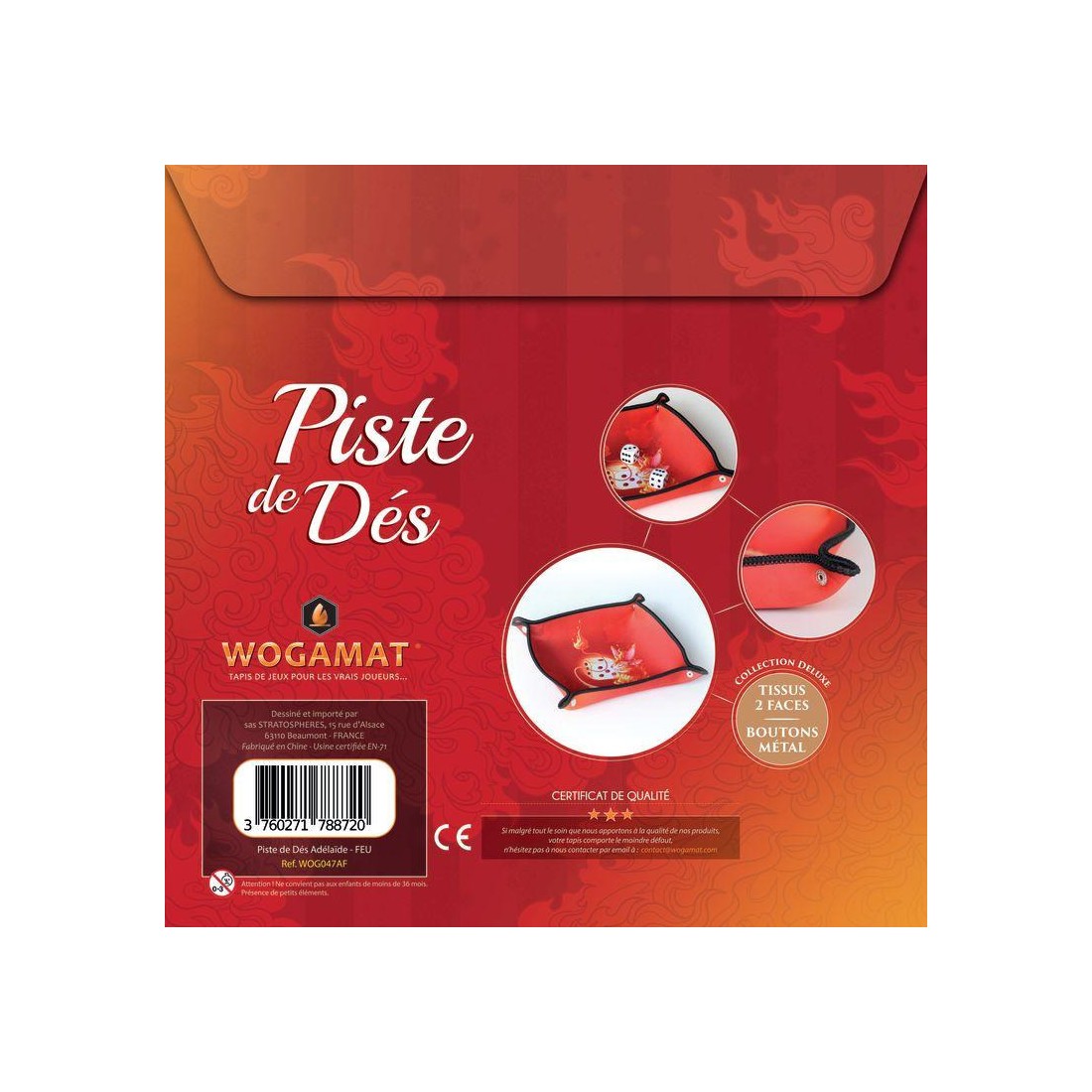 Les boutons pressions permettent d’assembler rapidement le tapis qui se transforme en piste à dés. Finis les jets de dés qui terminent leur course par terre ! Avec les pistes Wogamat, gardez le contrôle de vos lancers et habillez votre table de jeu à vos couleurs. Cette collection Deluxe propose 3 dessins exclusifs d’Adélaïde Camp, et une finition jamais vue pour ce type de produit !