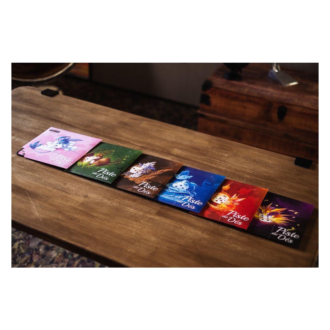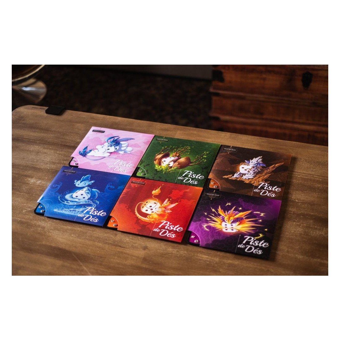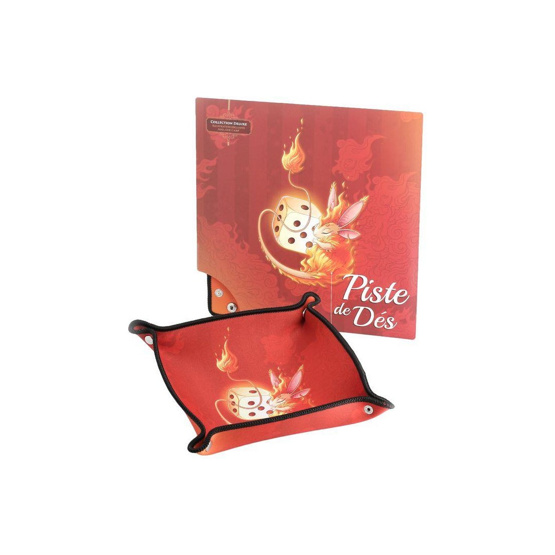 Les boutons pressions permettent d’assembler rapidement le tapis qui se transforme en piste à dés. Finis les jets de dés qui terminent leur course par terre ! Avec les pistes Wogamat, gardez le contrôle de vos lancers et habillez votre table de jeu à vos couleurs. Cette collection Deluxe propose 3 dessins exclusifs d’Adélaïde Camp, et une finition jamais vue pour ce type de produit !