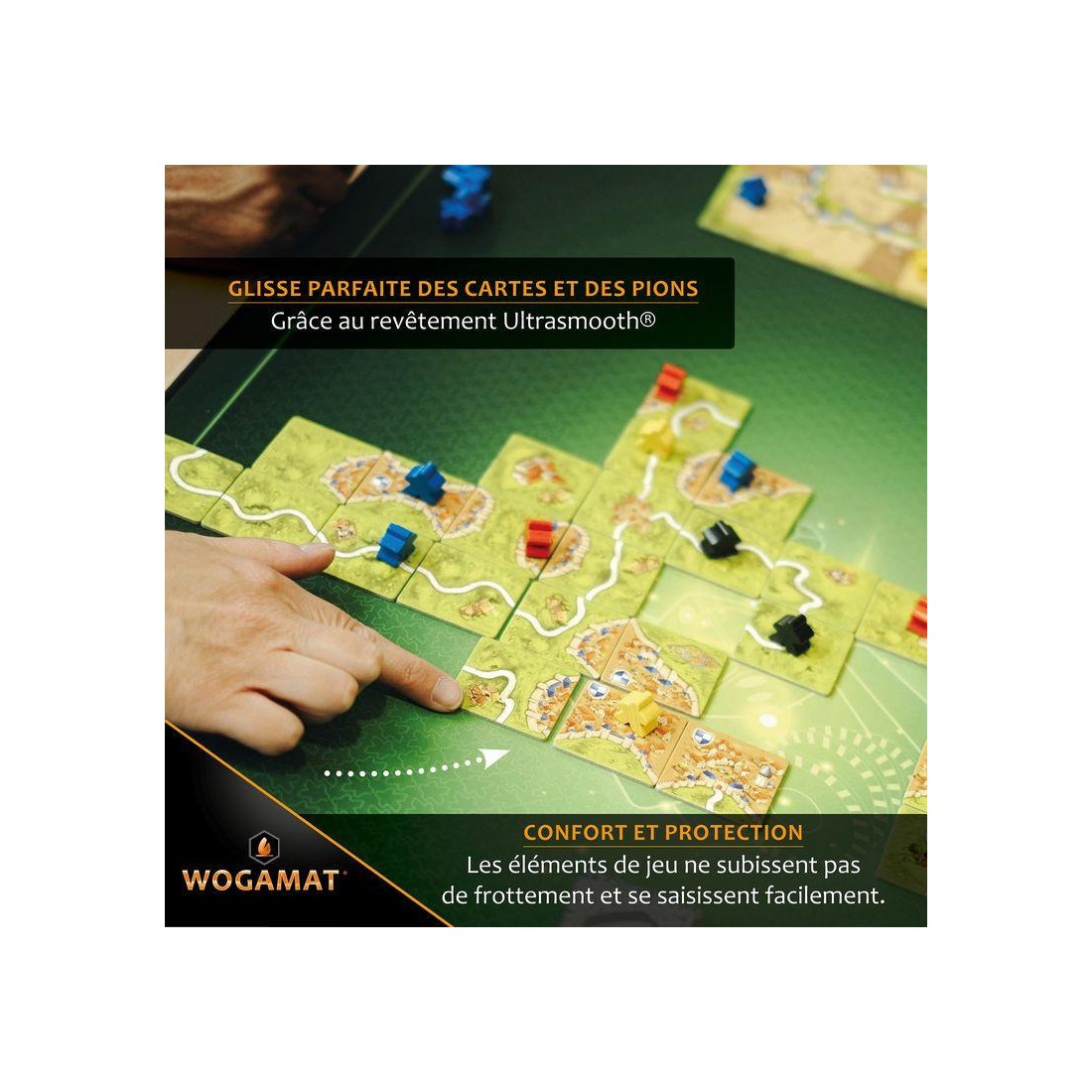 - Un confort exceptionnel pour la glisse des cartes, les lancers de dés, les déplacements de tuiles et de figurines
