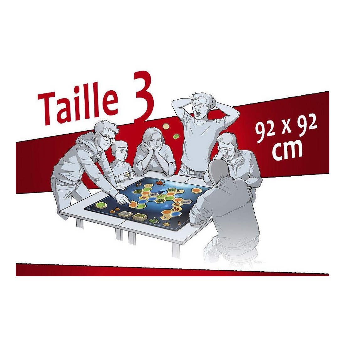 Une stabilité parfaite sur la table même si le tapis dépasse. Un confort exceptionnel pour la glisse des cartes, les lancers de dés, les déplacements de tuiles et de figurines. Ne craint pas le froissement, lavable à la main. Dimension : 92*92 cm