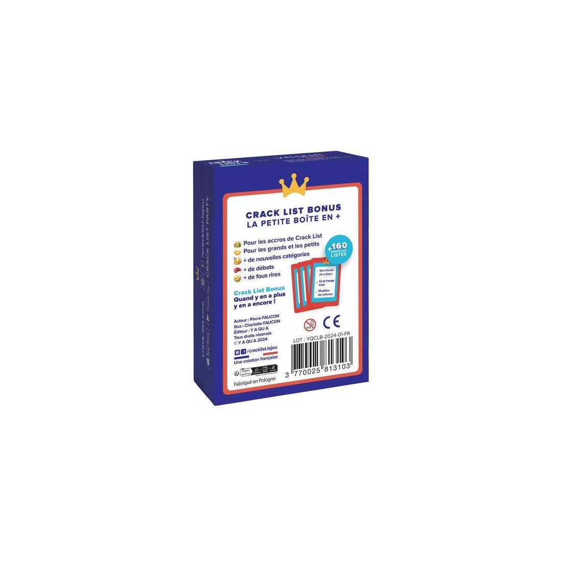 Crack List Bonus 1 : la petite boîte en plus ! +160 nouvelles listes à utiliser avec la boîte de jeu Crack List. Pour toute la famille, grands et petits.
