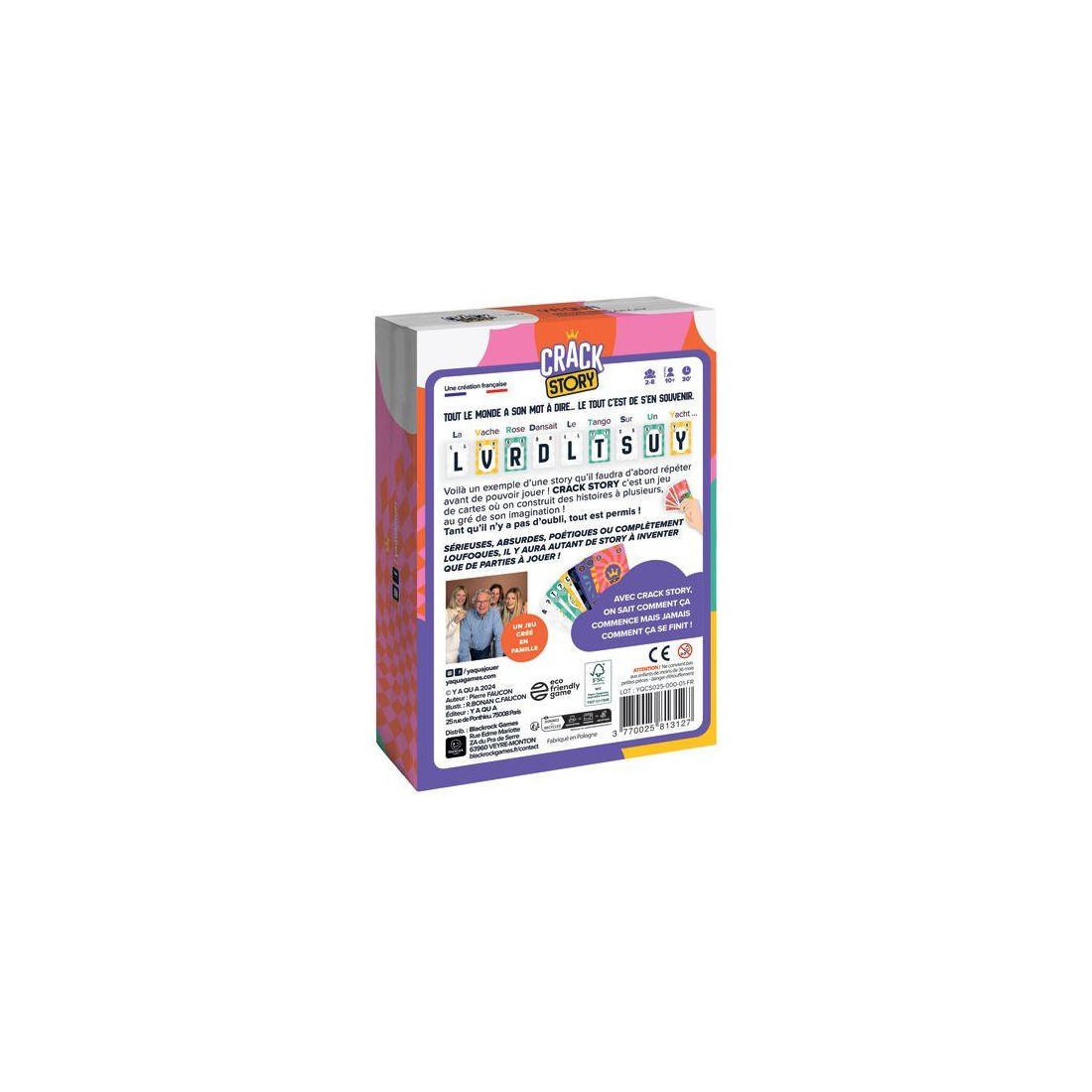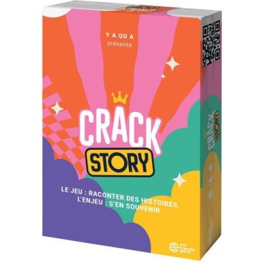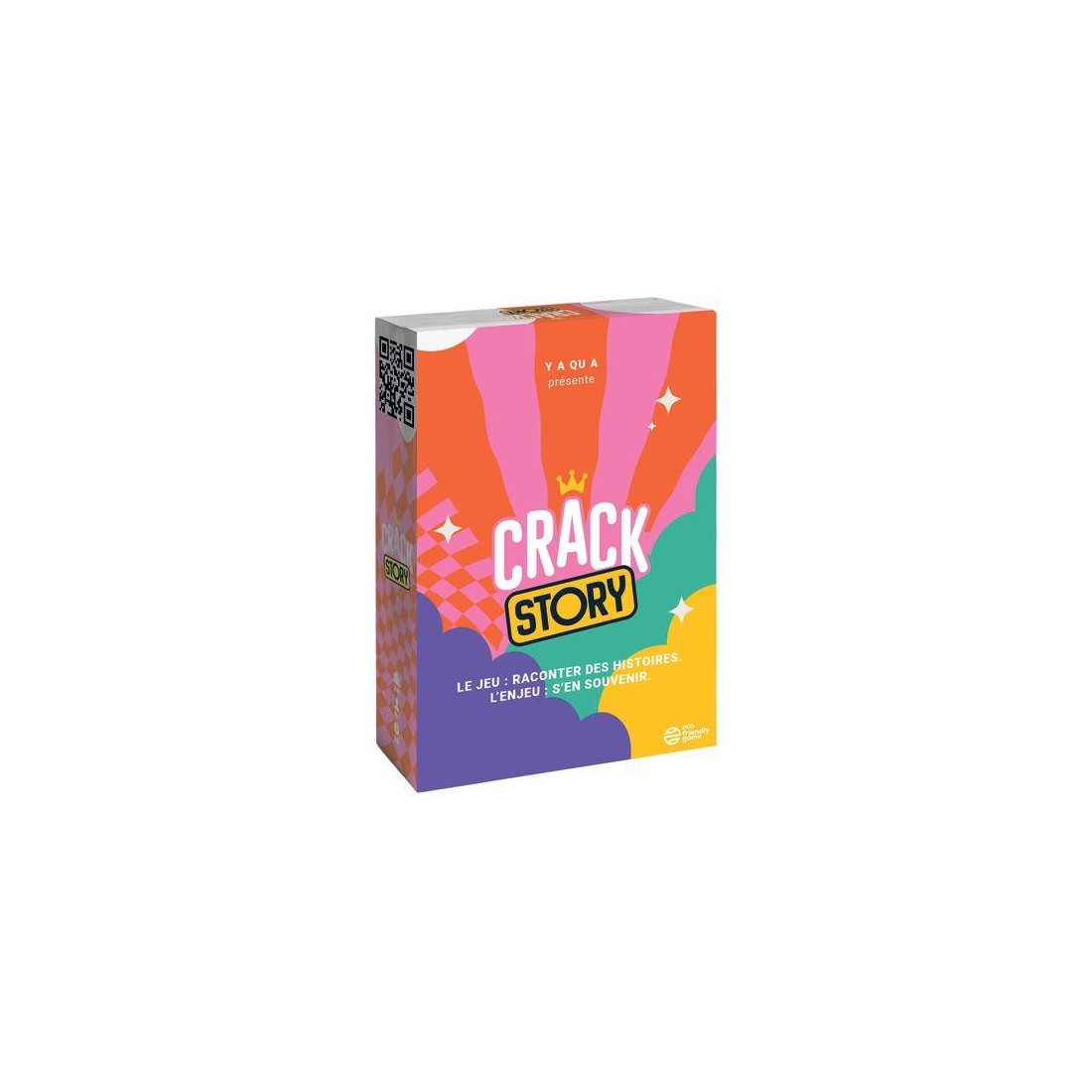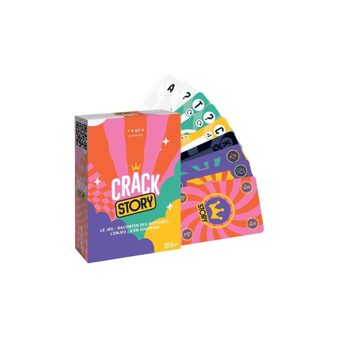 Être le 1ᵉʳ à se débarrasser de toutes ses cartes ! Dans Crack Story, les joueurs construisent ensemble et tour par tour une Story en utilisant leurs cartes comme premières lettres des mots qu’ils ajoutent. Pour ajouter un mot, il faut d'abord répéter la Story depuis le début sans se tromper.